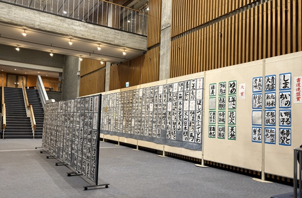 審査は書道連盟の理事長ほか4人の先生方に厳正に行ってもらい、連盟賞をはじめ各賞が決定。