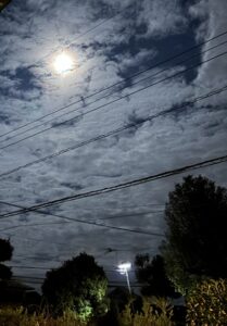 夜9時前から見上げた空には雲が掛かって、でも、その合間から顔を出してくれた“まんまるお月様”。