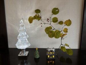 鋭い硬い棘もあるんですよ帰ってから、玄関を、ちょっとだけ、クリスマス仕様に飾ってみました