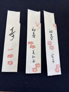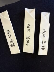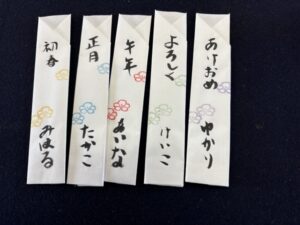 半紙を折って、筆文字で名前を書いて出来上がりです。