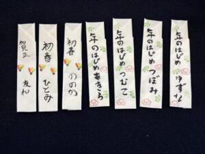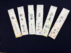 昨年末、御代志教室の皆さんには最後のお稽古日に暮らしの中の筆文字、ちょっと遊んでもらいました。