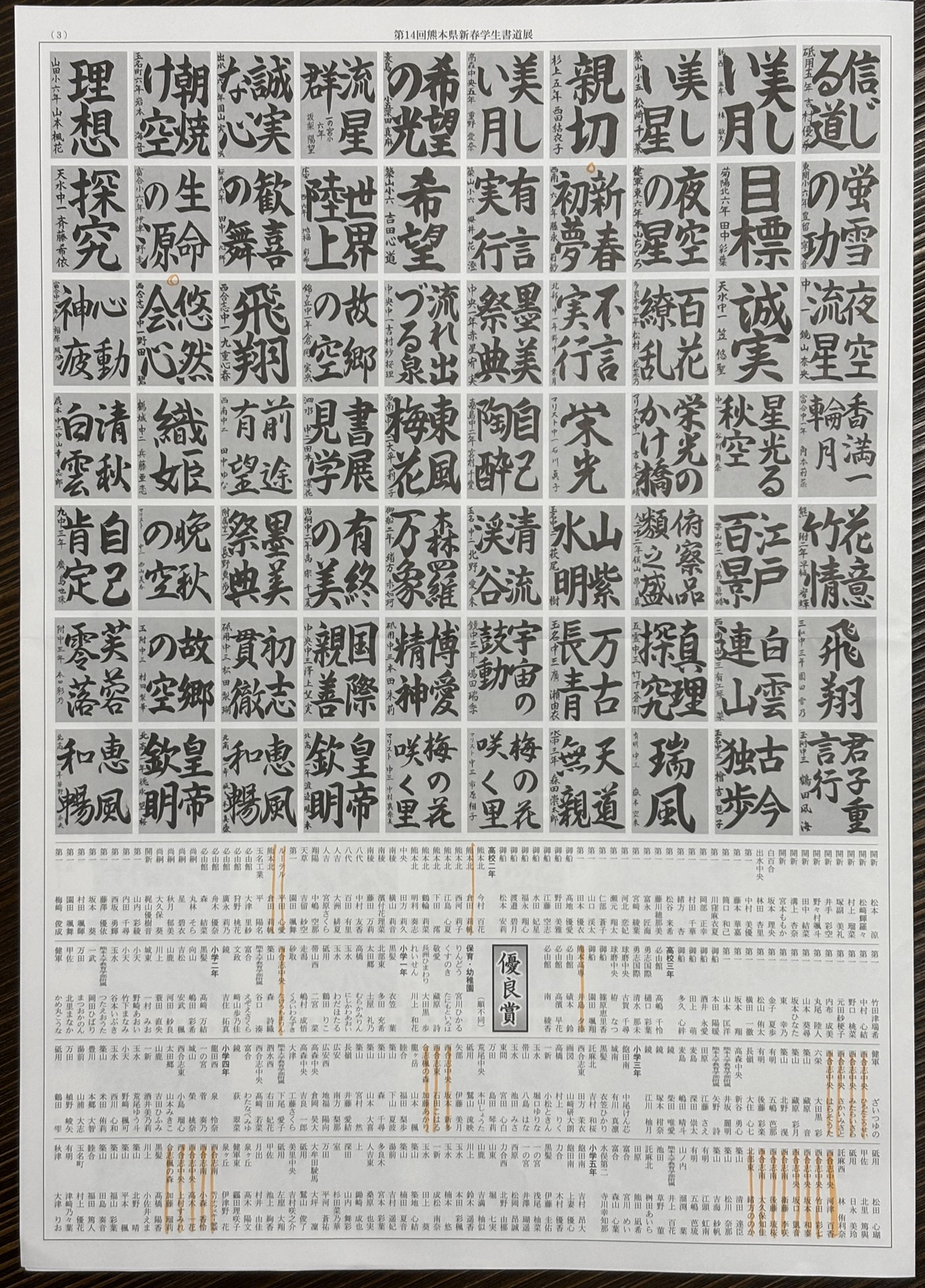 - 第14回新春学生書道展 入賞者